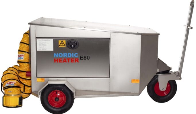 Den batteridrivna värmaren, även kallad B90, har en batteritid på cirka 12 timmar och en värmeeffekt på 90 kW.
